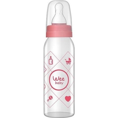 • Wee Baby Silikon Uçlu Desenli Cam Biberon 250 cc